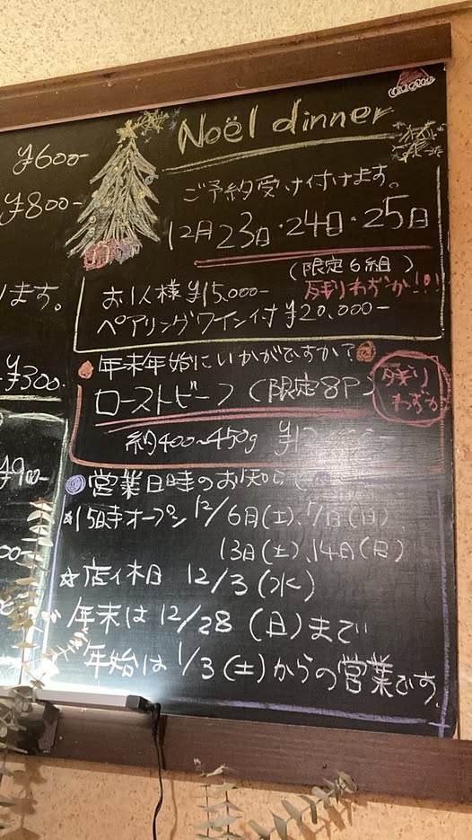 12月クリスマスディナーと店休日のご案内(2025年)ローストビーフも♪